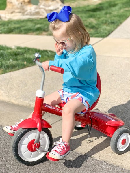 How good is this aqua solid fabric!? Solids are definitely one of my favorites because they go with so many items already in your littles closets!! This aqua is great for spring & summer outfits! It will definitely be a staple their wardrobe! Get something fun made in it today!!