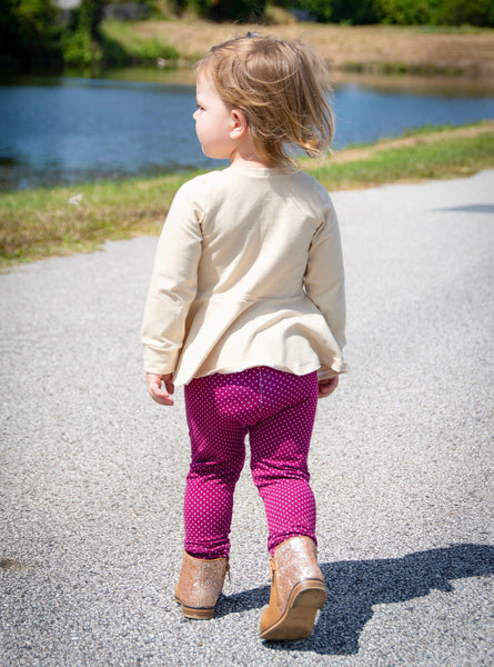 All my items are sewn by me & serged for a professional finish. All my tops (peplums, peplum dresses, pixie peplums) that don’t have cuffs will be professionally hemmed as well by me. All short sleeve options will be hemmed. Long sleeve options have a wrist cuff.
