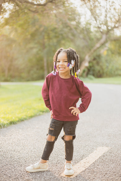 How gorgeous is this wine solid fabric!? Solids are definitely one of my favorites because they go with so many items already in your littles closets!! This wine is great for girls & boy! It will definitely be a staple their wardrobe! Get something fun made in it today!!