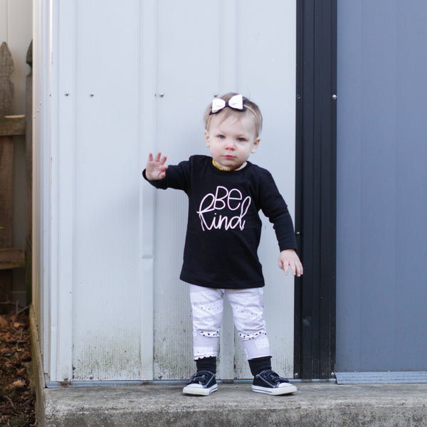 How great is this Be Kind top? This is a great shirt to help remind others to be kind! Everyone always needs a little reminder of that here & there. This would make a great gift, or a great addition to your own littles closet! Grab your tee or bodysuit today!!