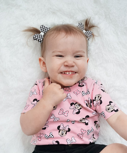 How fun is this pink Minnie Mouse fabric?! The pink is so pretty! All The little girls are bound to love this one! Get something made in it today!!