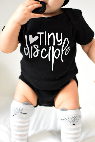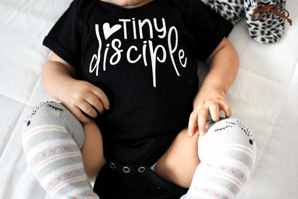 How amazing is this shirt!! I absolutely love the message it sends out! Our babies are totally tiny disciples as we raise them to be men & women of God. I love that! This would make a great gift, or a great addition to your own littles closet! Grab your tee or bodysuit today!!